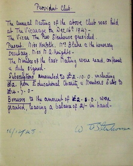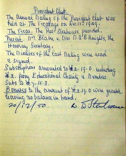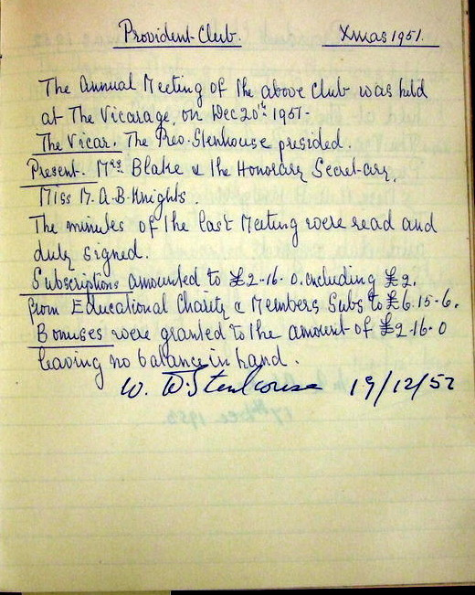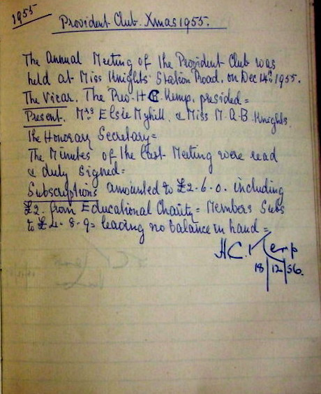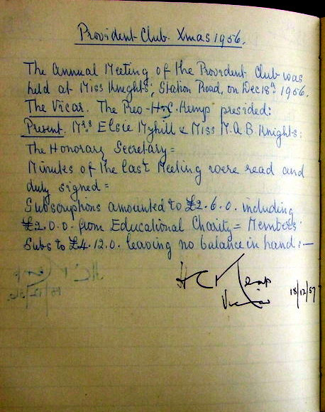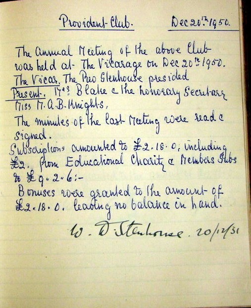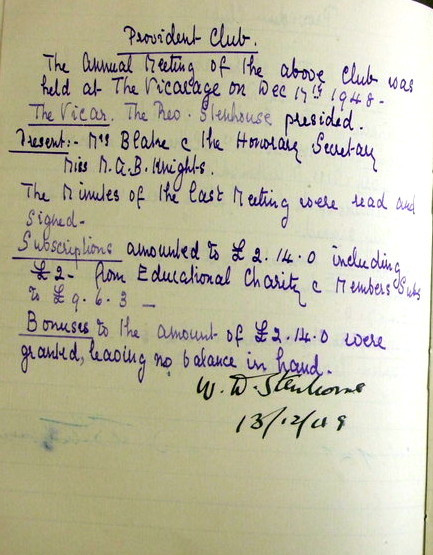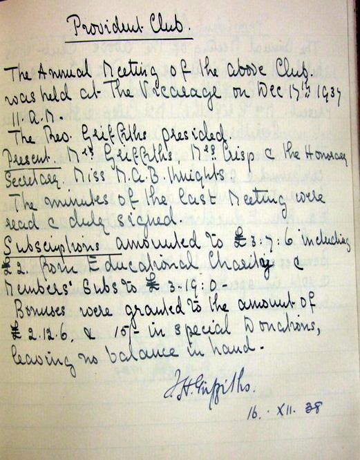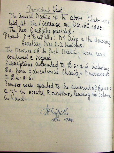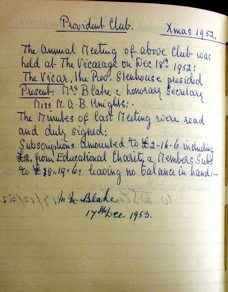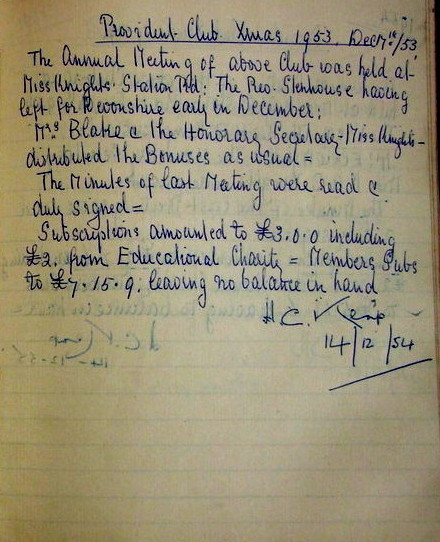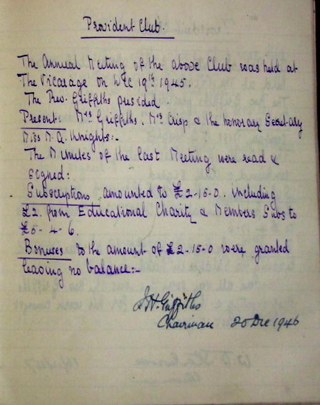 Social changes; the reduction in voluntary donations and inflation slowly rendered the club obsolete. The 1958 minutes were signed off in 1960 and the scheme ceased.