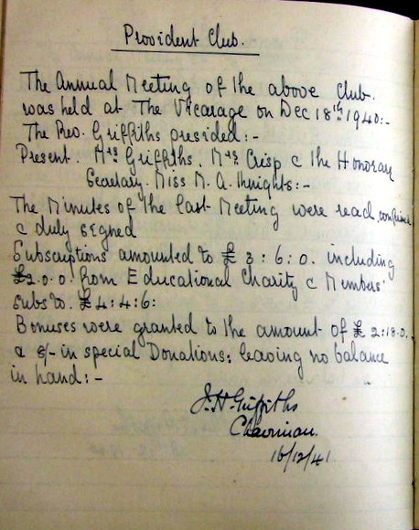 1941 | £2 | £1 6s 0d | £4 6s 6d | ? | Rev. John H Griffiths | |||||||||||||||||