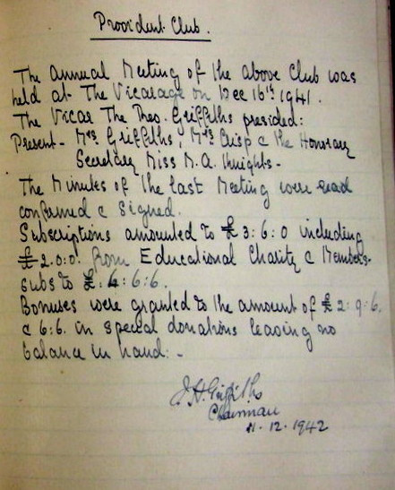 1942 | £2 | £1 19s 6d | £5 16s 0d | ? | Rev. John H Griffiths | |||||||||||||||||