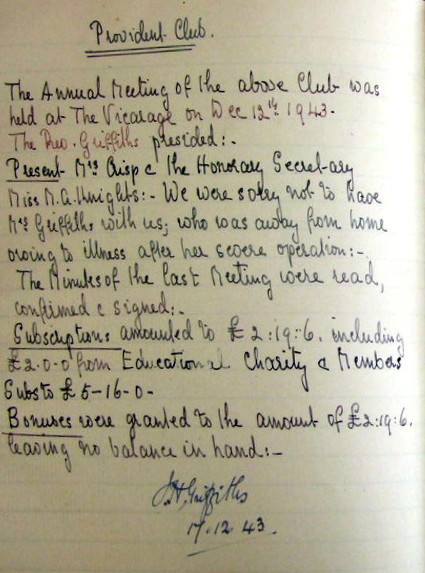 1943 | £2 | £0 16s 6d | £6 8s 0d | ? | Rev. John H Griffiths | |||||||||||||||||