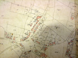 The map that accompanies the Award shows plots, mostly numbered, and these link with the Award’s list of owners and/or occupiers. The original Award map is held at the Norfolk Records Office and is about eight feet square on parchment. I have photographed it as best I can, in sections, and it can be viewed in the gallery below but I admit some images are poor. Buildings are coloured in pink, those outlined, but not coloured, are barns or outhouses.
