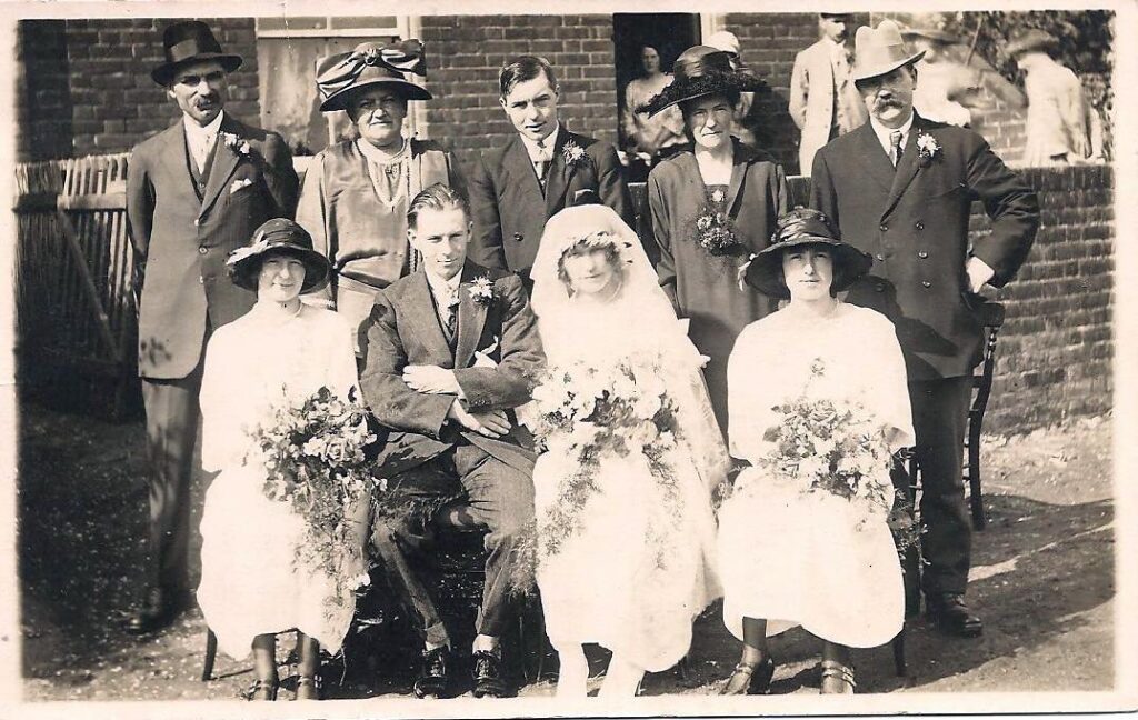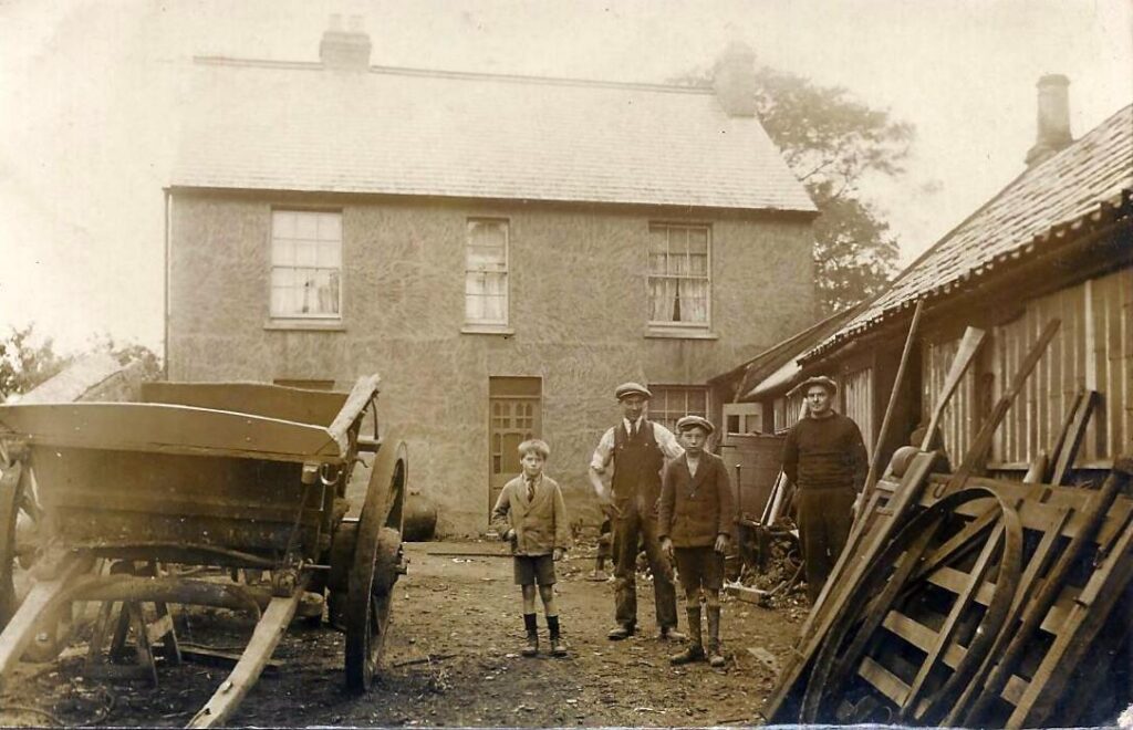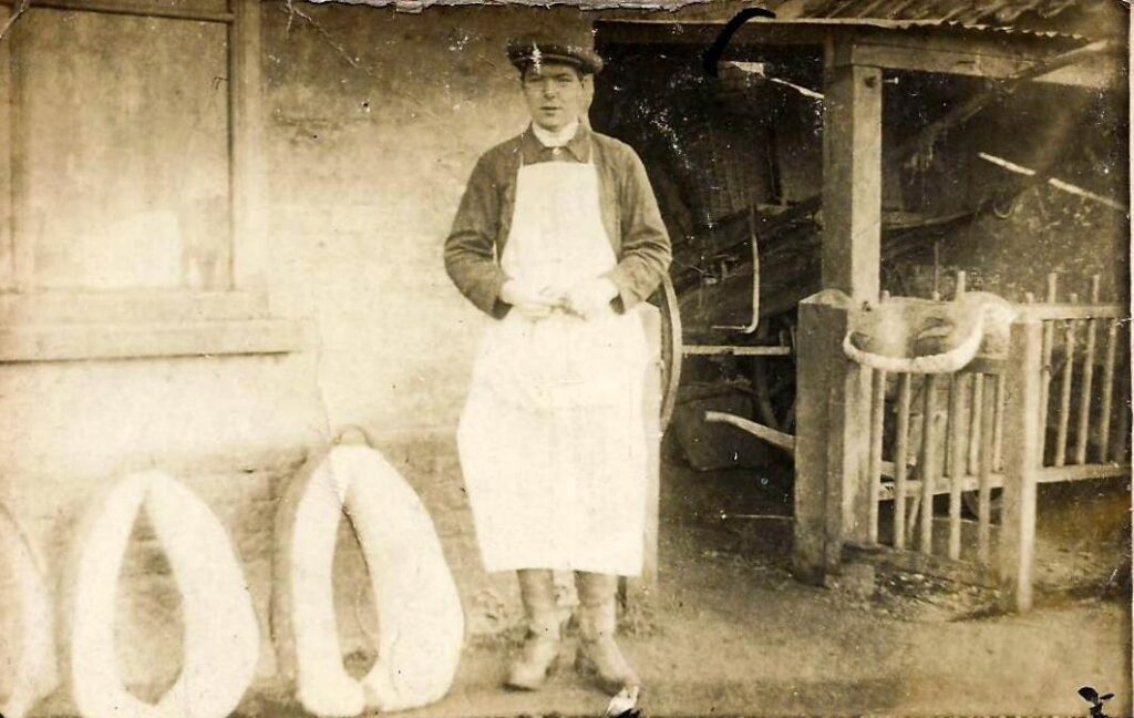 At the time these photos were taken the children were growing up and the business was becoming a family affair. Their son Freddy became a harness maker. Philip became a bricklayer. Later on, Eric became a carpenter. Their son Alfred was a wheelwright and later became a carpenter and builder. There was a blacksmith shop on the right of the yard where Alfred also made coffins and ladders. Alfred’s grandson Chris Hewitt recalled in 2025 how he would pump the bellows in the forge there as a boy. Chris did his apprenticeship there in the 1970’s and after his grandfather died in 1958 his side of the family became builders known as HM Harriss & Son the initials being based on his grandmother’s forenames Helen May.