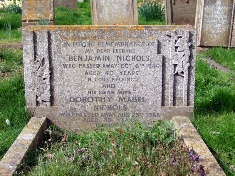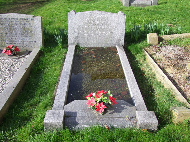 Naomi died on 1st January 1940 and Walter died at St Mary’s, whilst putting the hymns list up, on 8th October 1946 – dedicated to the community to his last moment. They were buried together at section E, plot B3 near the Church door at St Mary’s.