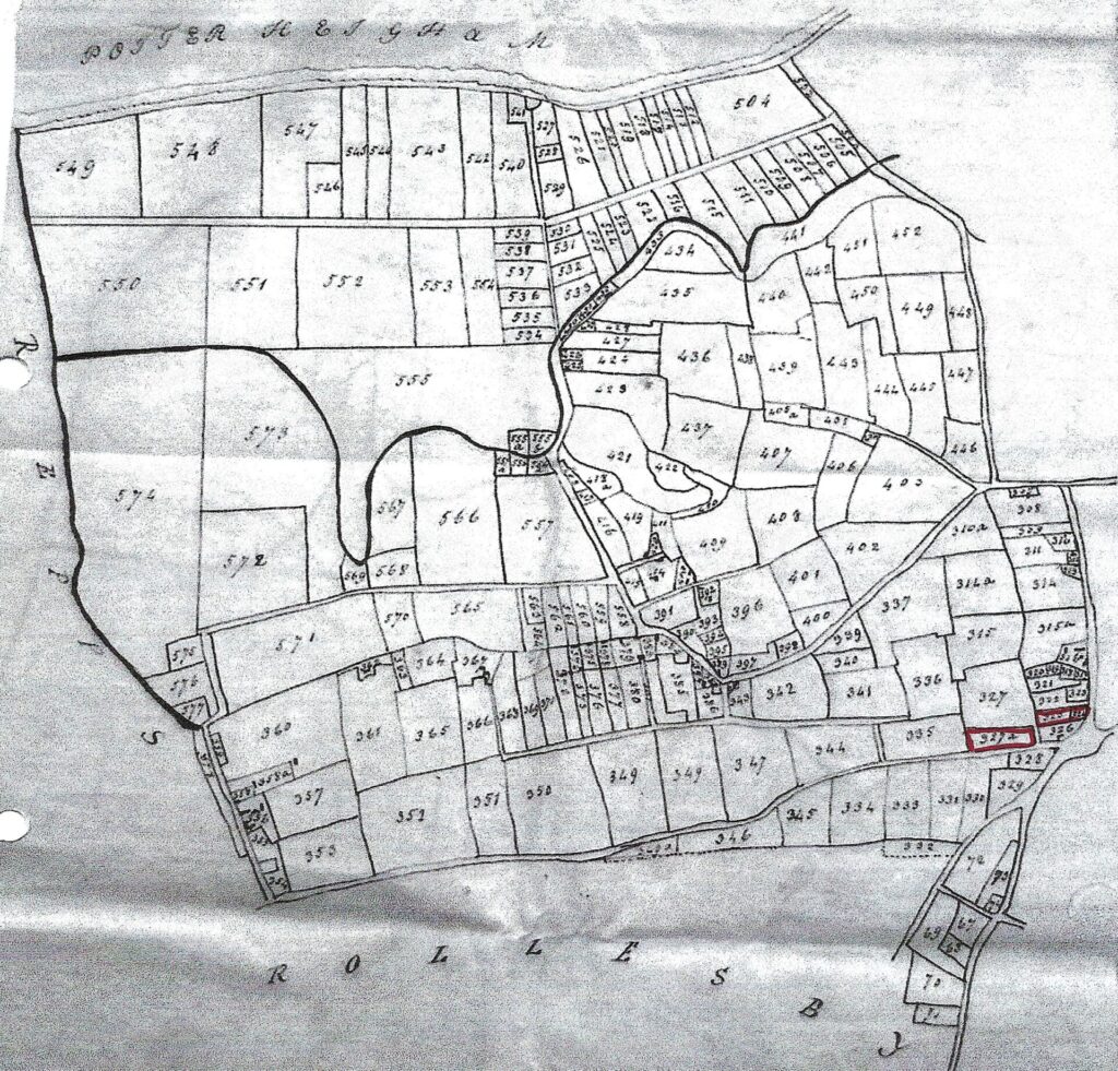“SECOND and one other piece of land marked No49 containing by measure three acres, one rood and twenty-eight perches bounded by and belonging to John Ensor towards the north; by an ancient lane towards the north-east; by land hereby allotted to John Pollard towards the south and land belonging to John Pollard and Thomas Lusher respectively towards the west.”